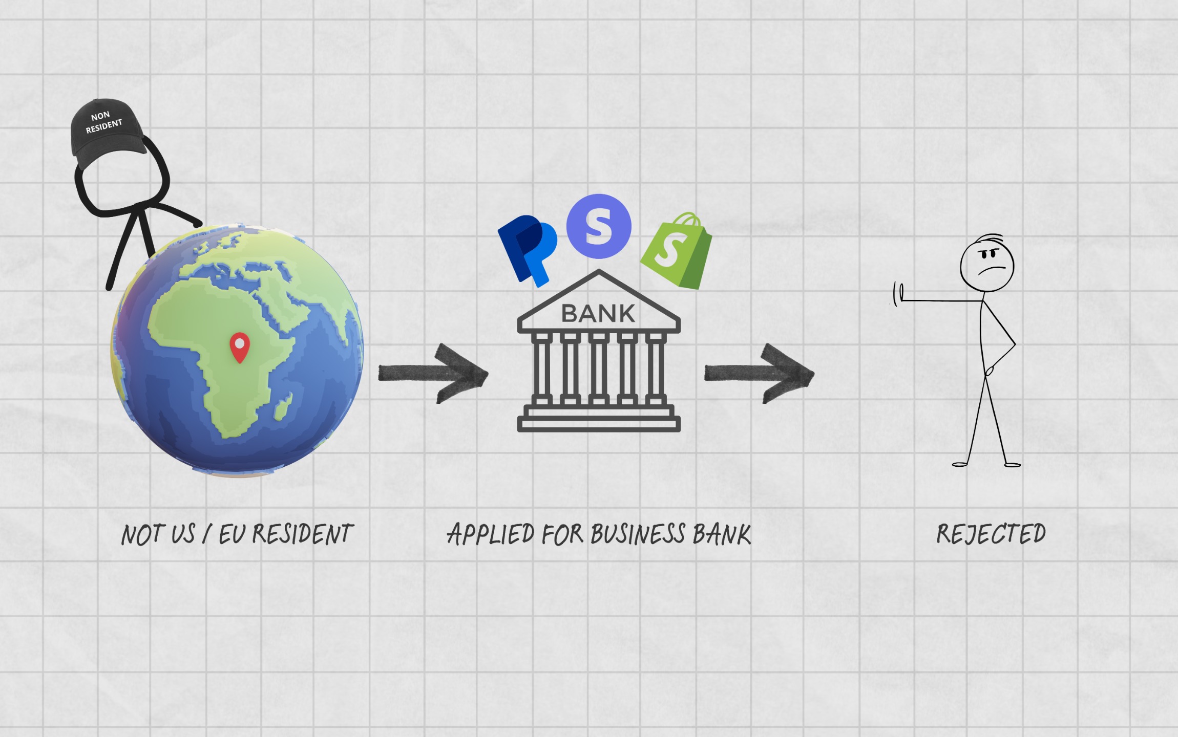 لا بوابة دفع، لا مداخيل. لا بنك، لا أعمال! التوسع مُستحيل عندما تُرفض باستمرار. بصفتك مقيمًا خارج الولايات المتحدة/الاتحاد الأوروبي، فأنت تُدرك حجم المعاناة: مهما كانت قوتك، تُغلق الأبواب بقوة. هذه ليست عقبة بسيطة، بل هي الحاجز الذي يُعيق نموك. نحن نُدرك ذلك لأننا مررنا بهذه التجربة.